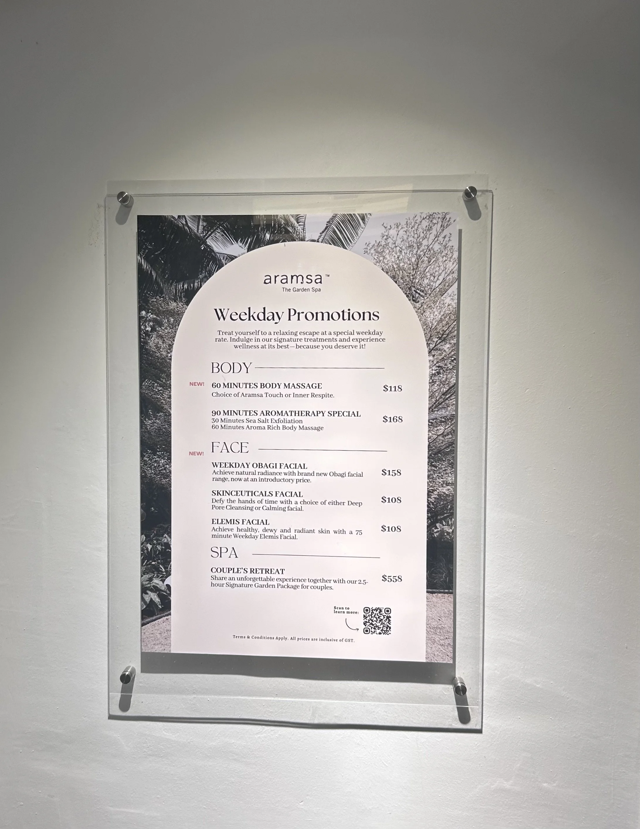 Visual identity is at the core of a brand — it's the first thing people see and it has the potential to leave a lasting impact on our consumers. Visual Identity in Motion • Visual Identity in Motion • Visual Identity in Motion • Outdoor Banner for Aramsa ~ The Garden Spa Hoarding - Renovation Spa Menu Product packaging Signages & Touchpoints Website Banner <<< Back to home